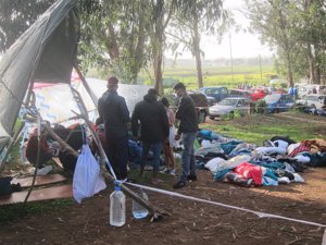 En cuanto a la acampada que se ha formado por fuera, se ha planteado hacer relevos entre los migrantes porque a las 72 horas de pernoctar fuera del campamento se pierde la plaza, y también entre los activistas que les acompañan por las noches.